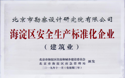 2020年1月5日,我院再獲北京市海淀區(qū)住房和城鄉(xiāng)建設(shè)委員會(huì)及北京市海淀區(qū)應(yīng)急管理局“海淀區(qū)安全生產(chǎn)標(biāo)準(zhǔn)化企業(yè)”認(rèn)證,標(biāo)志著我院的安全生產(chǎn)管理工作向全面標(biāo)準(zhǔn)化、科學(xué)化和規(guī)范化邁出堅(jiān)實(shí)的一步。