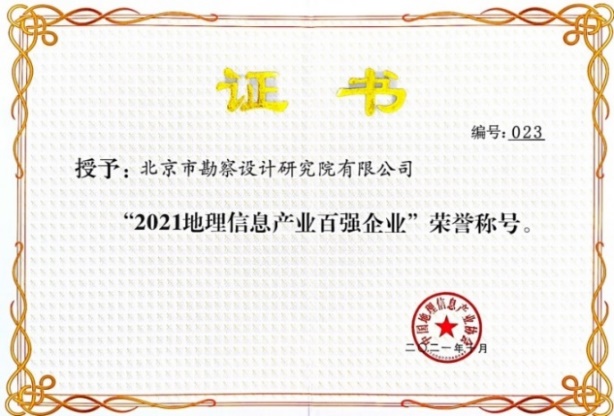 北勘院入選“2021地理信息產業(yè)百強企業(yè)”
